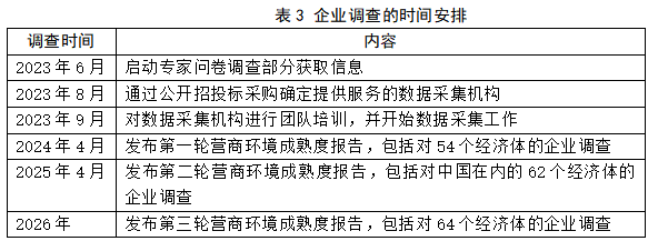 (四)調(diào)查過程 調(diào)查開展前,世行將對第三方調(diào)查機構進行系統(tǒng)科學的培訓,調(diào)查實施時將邀請被調(diào)查企業(yè)的高管、股東,或者人力資源總監(jiān)和財務總監(jiān)等專業(yè)人員對問卷進行作答,如出現(xiàn)無效作答或者回答矛盾等問題,將通過反復溝通,重新訪談、填答的方式以保證問卷結果的真實性和科學性。詳細時間安排見表3。