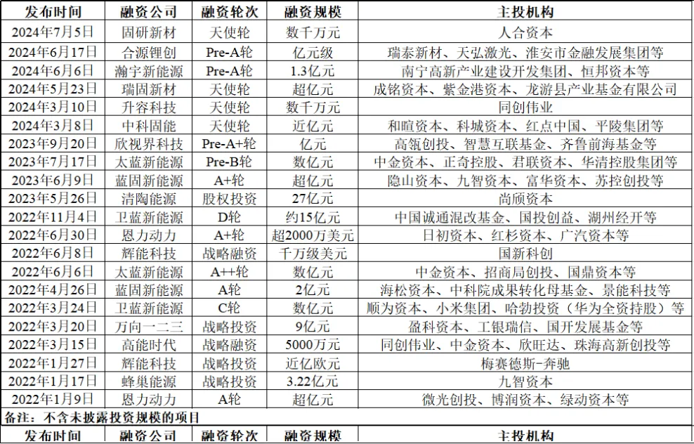表1 2022-2024年中國固態電池行業部分投融資事件