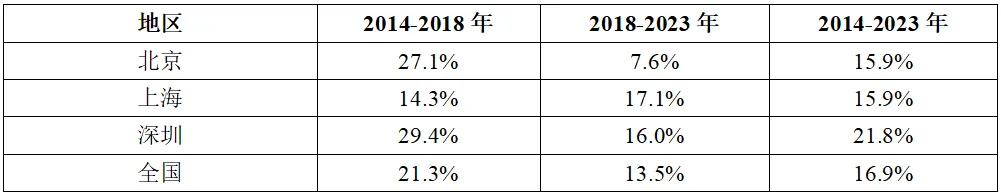 表格信息來源:北國咨根據(jù)北京、上海、深圳各協(xié)會(huì)數(shù)據(jù)整理測(cè)算