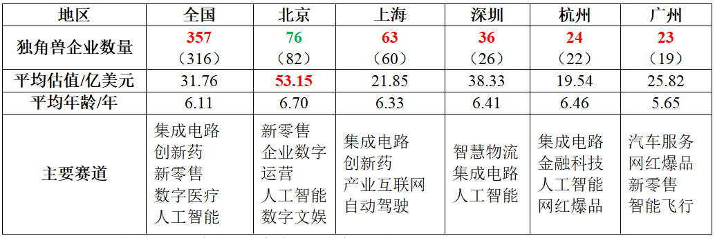 表3 2022年北京與國內(nèi)其他主要城市獨(dú)角獸企業(yè)指標(biāo)對比