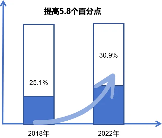 從增加值看,2018年全市高精尖產業實現增加值7610.3億元,占地區生產總值比重為25.1%;2022年全市高精尖產業實現增加值12857.8億元,占地區生產總值比重達到30.9%[2],較2018年提高5.8個百分點。