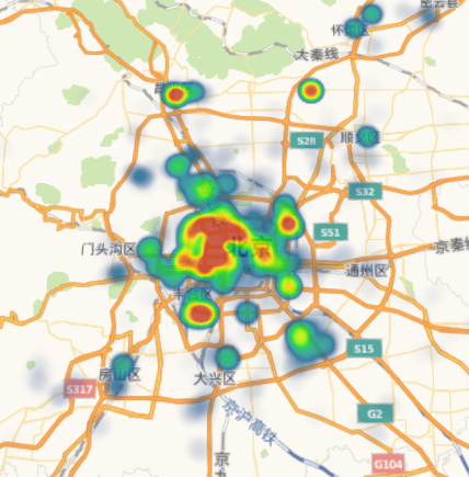 圖2 2019年北京總部企業(yè)空間布局熱力圖