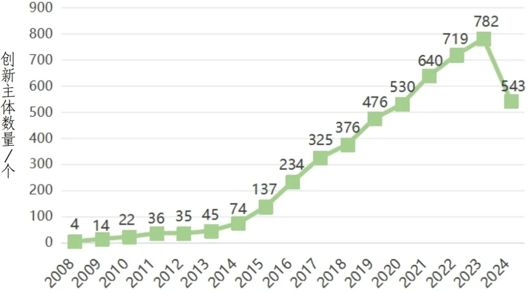 圖3 全球eVTOL領域創新主體數量變化趨勢