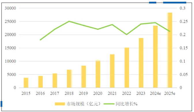 圖3 2015-2025年中國商業航天市場規模及增長率