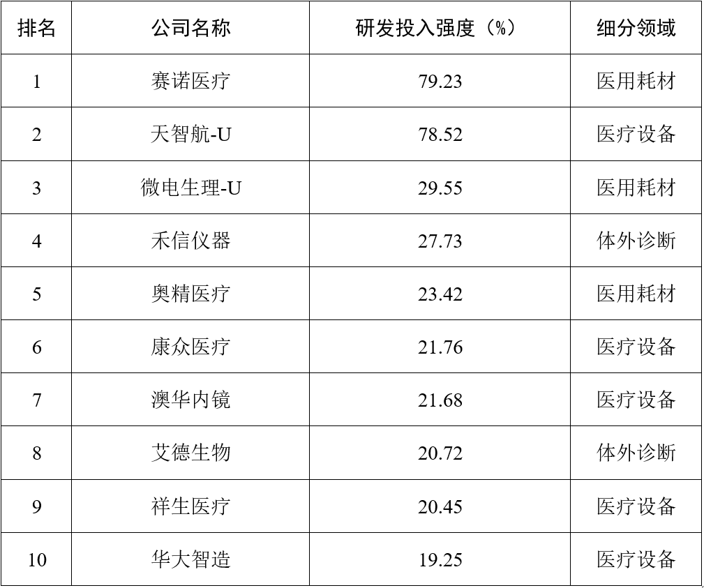 表4 2022年研發投入強度TOP10