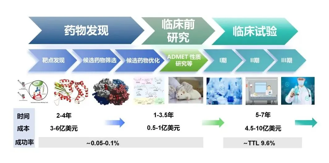相關數據表示,至今60%疾病無有效治療藥物,大量臨床需求未被滿足,業界迫切需要新的研發工具和范式加快新藥研發上市,AI+新藥研發進入關注視野。目前AI主要應用在靶點發現、化合物合成、化合物篩選、晶型預測、適配患者招募等環節。