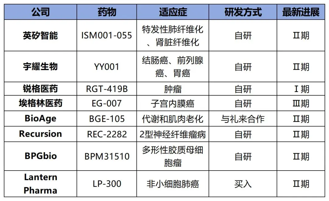 圖3 AI制藥公司臨床管線進度