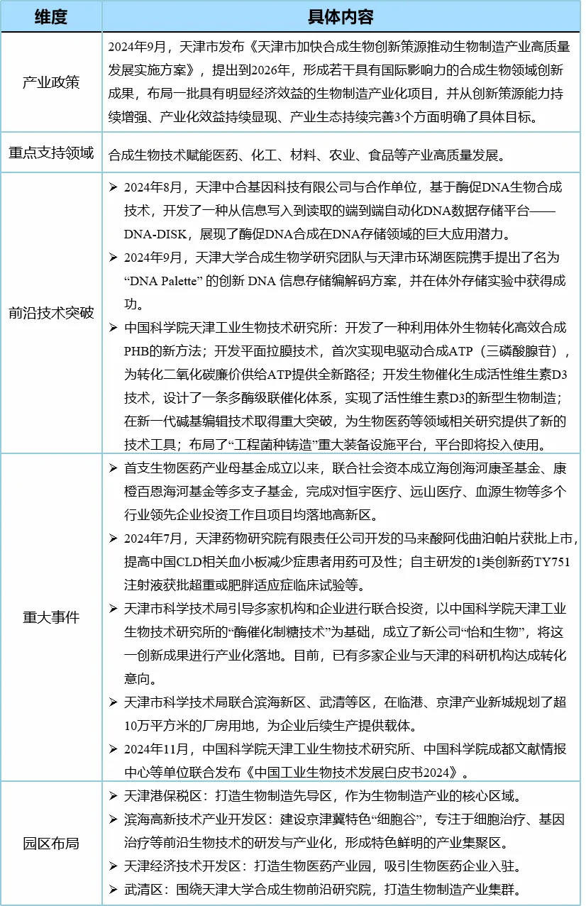 表3 天津市合成生物最新發展態勢