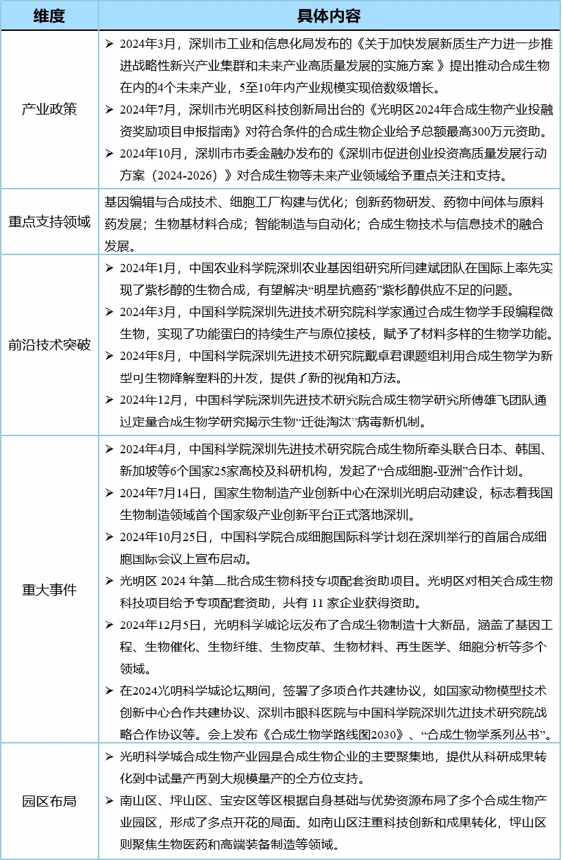 表4 深圳市合成生物最新發展態勢