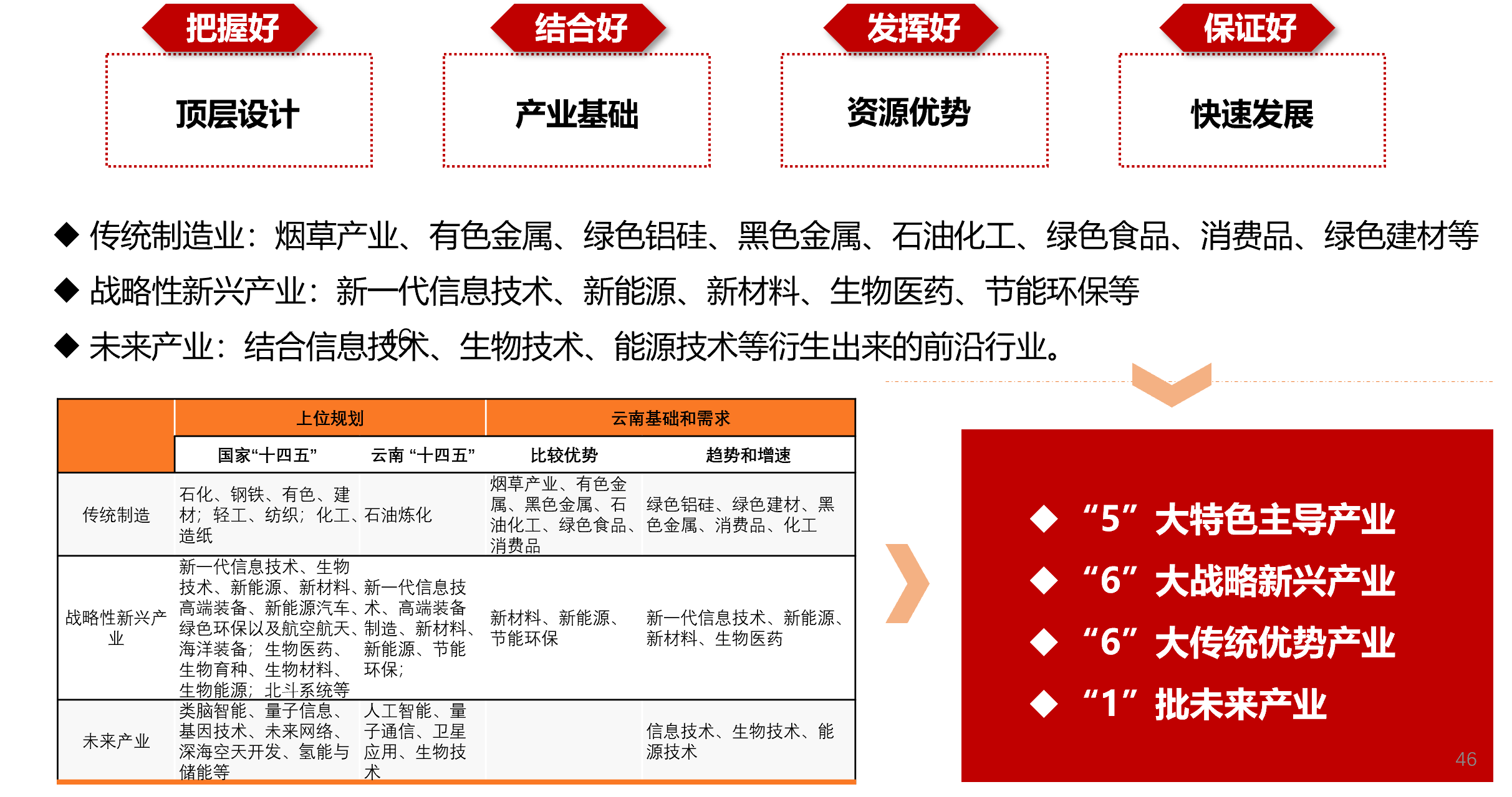 通過對建國以來云南省工業發展歷程進行剖析和產業競爭力分析,找出制約云南省工業發展的核心問題,圍繞“優勢在區位、出路在開放”的發展主線,提出大力推進“5661”現代工業體系建設,以重點項目和龍頭企業為支撐,打造優勢產業鏈,實施工業強省戰略和數字工業戰略,構建特色鮮明、技術先進、綠色安全、升級迭代的云南現代工業體系,在推動高質量跨越式發展上闖出新路。
